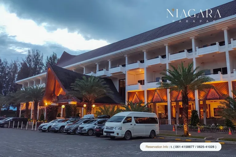Hotel Niagara Parapat, sebuah hotel bintang 4 di Parapat, menawarkan pelayanan terbaik dan suasana yang mewah dan nyaman dengan harga terjangkau. Hotel ini menjadi pilihan tepat bagi Anda yang ingin menikmati keindahan Danau Toba dengan pengalaman menginap yang tak terlupakan.