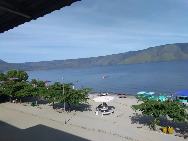 Tranquil Ambiance: Immerse yourself in the cool breeze and the mesmerizing view of the white sand beach. The captivating beauty of Lake Toba will further enhance your stay at RAJA HOTEL.