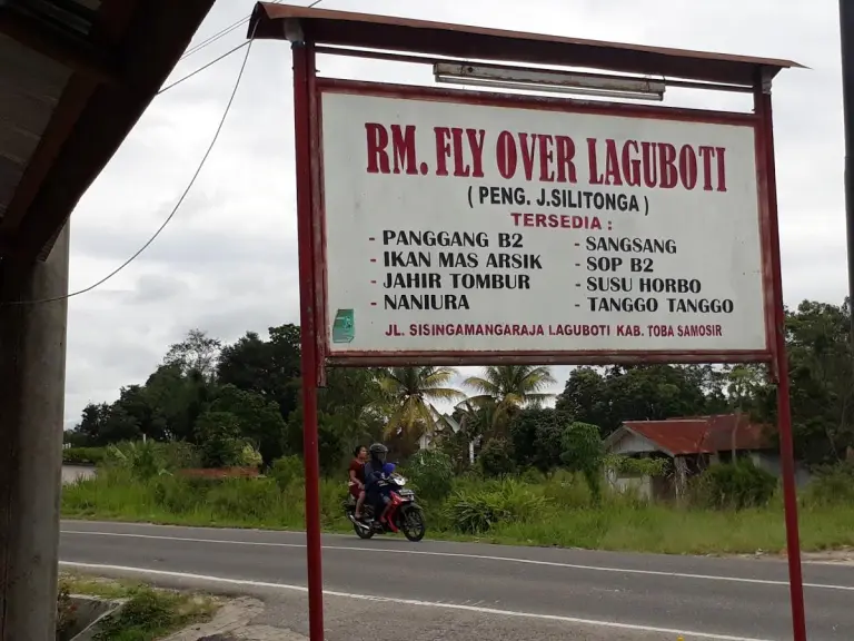 Kelezatan masakan khas Batak menjadi daya tarik utama Restoran Fly Over Laguboti. Menu andalannya, seperti Saksang dan Arsik Ikan Mas, selalu menggoda para pecinta kuliner. Selain itu, restoran ini juga menawarkan berbagai hidangan khas Batak lainnya yang tak kalah lezat, seperti: