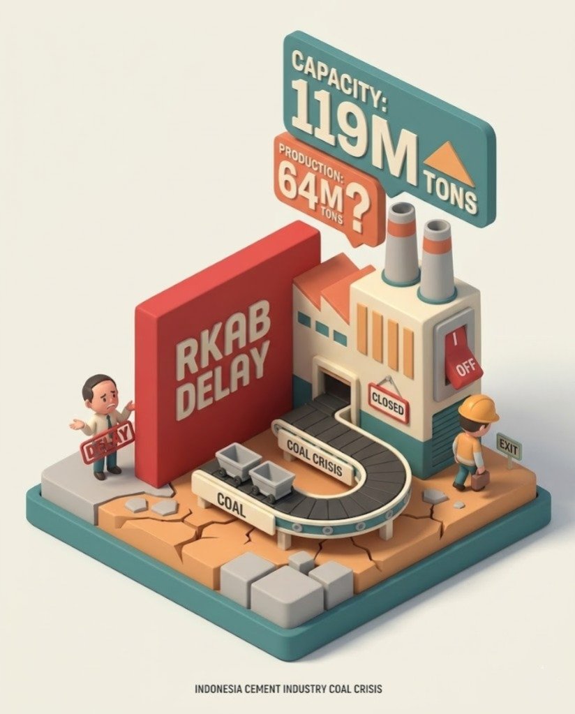 Kelemahan struktural sektor ini sudah terlihat jelas: kapasitas produksi semen nasional mencapai 119 juta ton per tahun, namun realisasi produksi hanya 64–67,8 juta ton, dengan tingkat utilisasi kapasitas yang hanya 55–56%. Kini, menipisnya stok batu bara semakin menekan output yang sudah terbatas tersebut.