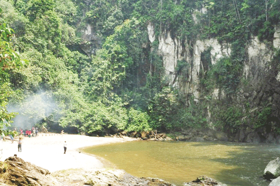 Dengan pantai pasir putih unik ini akan terasa menyenangkan untuk menikmati kesegaran air yang mengalir dari air terjun, Anda bisa berendam di kolam tersebut sambil menikmati pemandangan alam dengan flora fauna yang beraneka ragam.