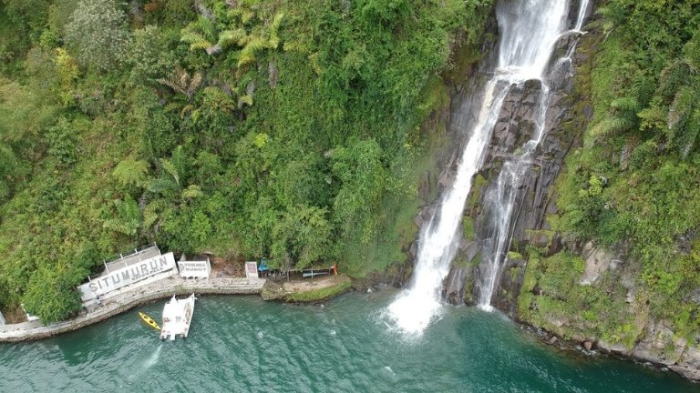 Yang menarik dari Air Terjun Situmurun adalah airnya langsung jatuh mengalir ke perairan Danau Toba. Bayangkan betapa cantiknya menyaksikan air terjun yang jatuh langsung ke danau super luas ini.