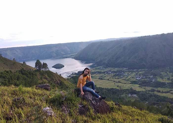 - Menikmati pemandangan Danau Toba yang indah dari atas batu.