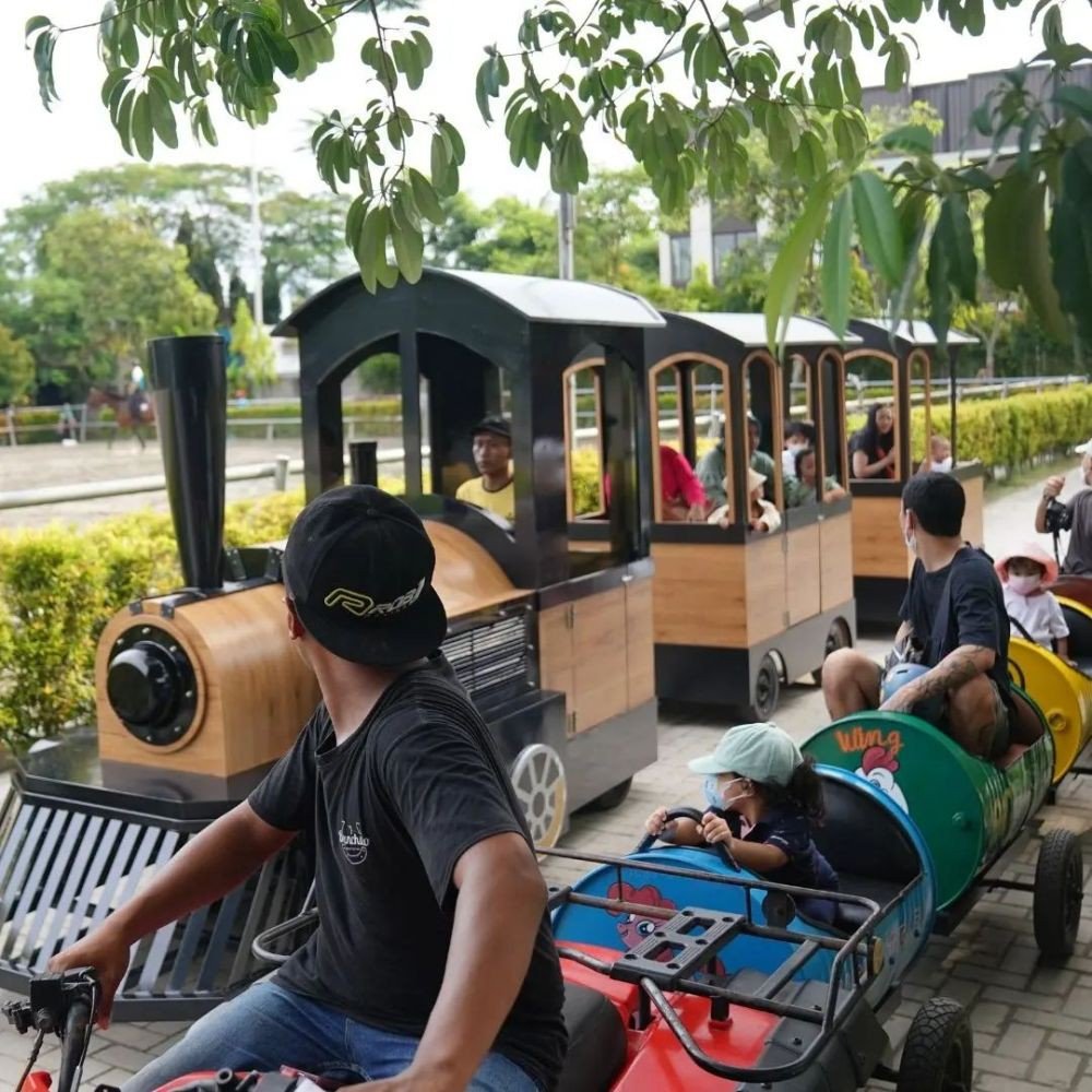 - Kereta mini: Pengunjung dapat menikmati perjalanan santai dengan kereta mini mengelilingi kawasan Branchsto Equestrian.