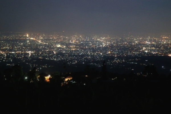 Sementara di malam hari, pemandangan lampu kota dari tempat ini begitu indah dan romantis. Apalagi, ditemani dengan hawa dingin yang menyejukkan di atas bukit yang berketinggian sampai 1.500 meter di atas permukaan air laut.