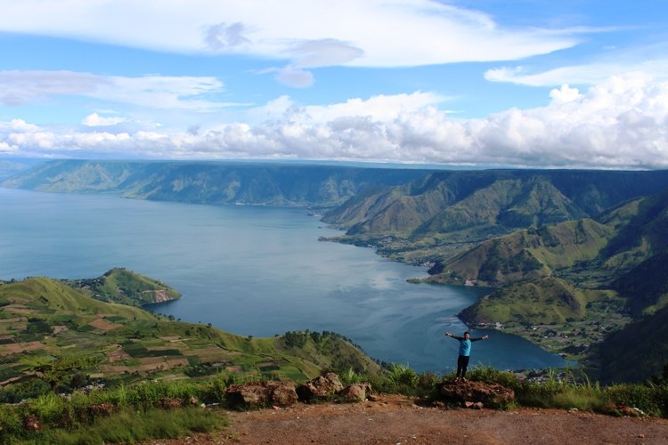 - Pemandangan: Danau Toba, perbukitan hijau