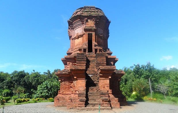 - Berfoto dengan latar belakang candi yang menjulang tinggi. Candi ini memiliki warna oranye bata yang menarik. Namun, pengunjung tidak boleh memasuki candi karena dikhawatirkan dapat merusak keaslian candi.