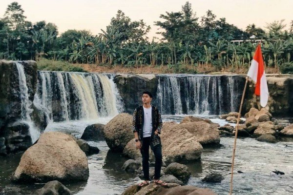 - Berfoto dengan latar belakang air terjun yang estetik.