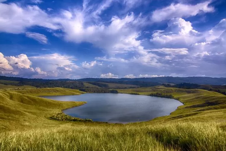 - Pemandangan alam di sekitar danau sangat indah, dengan bukit-bukit savana yang hijau.