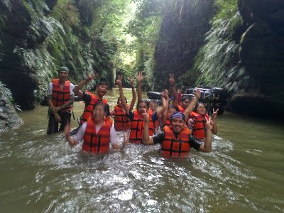 Terlebih bagi para pecinta alam dan pencinta olahraga air, karena perjalanan akan ditempuh mengarungi sungai jeda waktu sekitar 2-3 Jam perjalanan dengan memasuki 3 goa dengan panjang bervariasi, air terjun di kanan kiri sungai, spot jumping yang beragam, serta air terjun air panas.