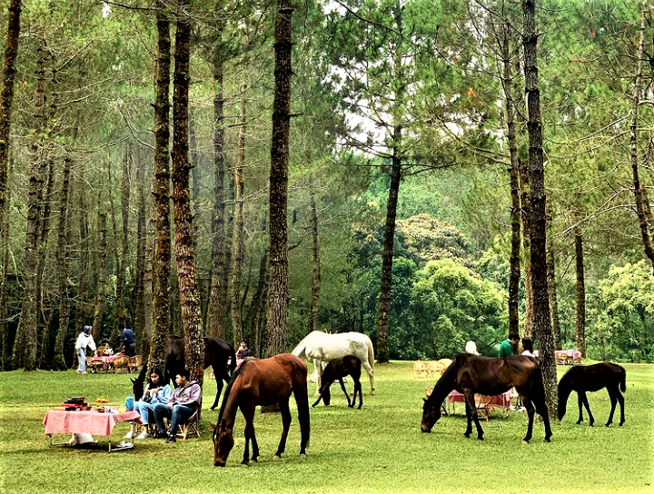 Jungle Milk punya daya tarik yang beda dari tempat wisata alam lainnya, yakni kuda-kuda di tempat ini sengaja dilepas bebas ke area camp.