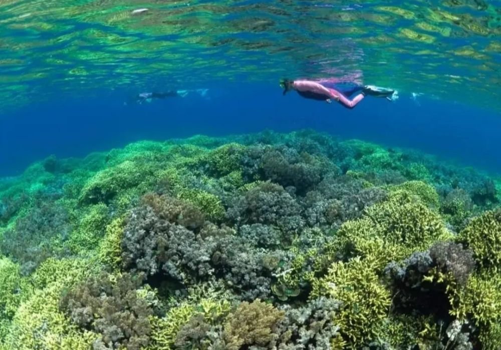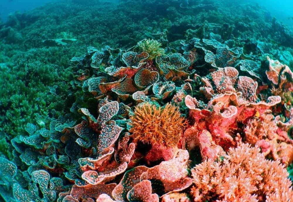 - Karpet Terumbu Karang yang Luas: Pemandangan paling ikonik di sini adalah hamparan karang meja (Acropora table corals) yang tumpang tindih dan membentang luas seperti karpet raksasa. Ukurannya masif dan kondisinya sangat sehat, dengan warna-warni cerah yang memanjakan mata.