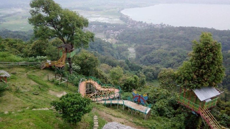 Selain itu, mereka juga dapat bersantai di rumah pohon yang terletak tidak jauh dari jembatan kayu.