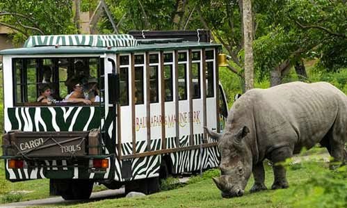 - Safari siang: dilakukan dengan petualangan menyusuri habitat hewan selama 45 menit. Setelah selesai, kamu bisa menikmati wahana permainan, seperti rumah hantu dan bom-bom car. Bisa juga melihat pameran satwa dan pertunjukan edukasi.