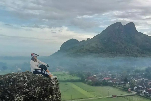 Jalannya tidak selalu berupa tanah, melainkan didominasi jalan berbatu dan jembatan bambu. Selain itu, terdapat batu menyerupai tangga, sehingga memudahkanmu untuk tiba di puncak. Apalagi medannya tidak terjal dan membutuhkan waktu kurang dari 1 jam.