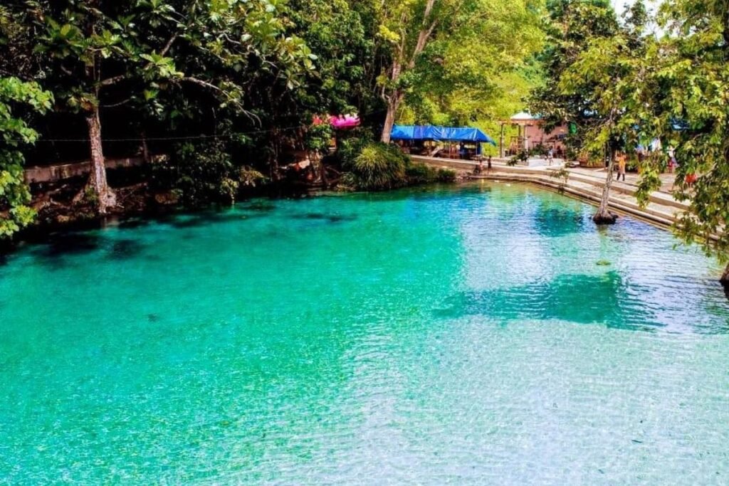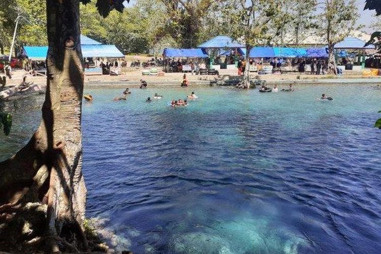 Saat cuaca cerah, air terlihat lebih jernih dan segar. Nikmati pengalaman berenang di kolam alami dengan suasana asri dan sejuk.