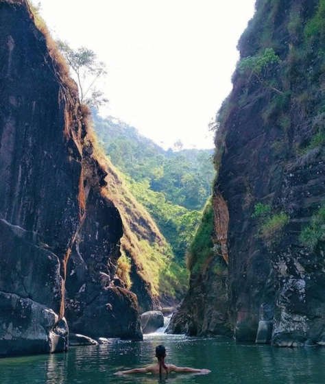 Tempat ini masih terjaga kealamiannya, pesona alam yang eksotis dengan perairan sangat jernih dan bersih bisa kamu temukan. Sungai juga didominasi tebing batu yang tertutup oleh lumut dan hutan liar. Suasananya yang tenang dan nyaman membuatnya cocok dijadikan tempat untuk meloloskan diri sejenak dari rasa penat sehari-hari.
