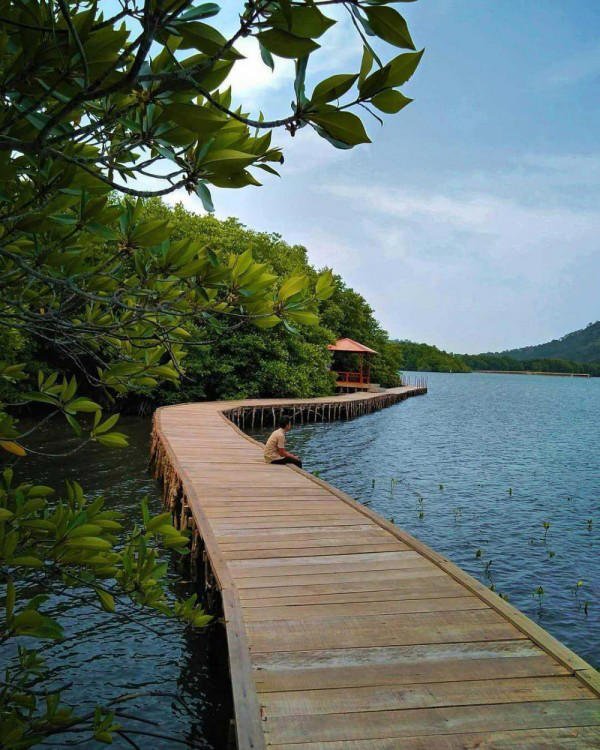 Selain menjadi background foto yang indah, adanya hutan bakau ini dapat menjadi sarana mengenal tumbuhan lebih dekat. Kamu bisa menjelajahi hutan bakau ini dengan jembatan kayu yang tersedia.